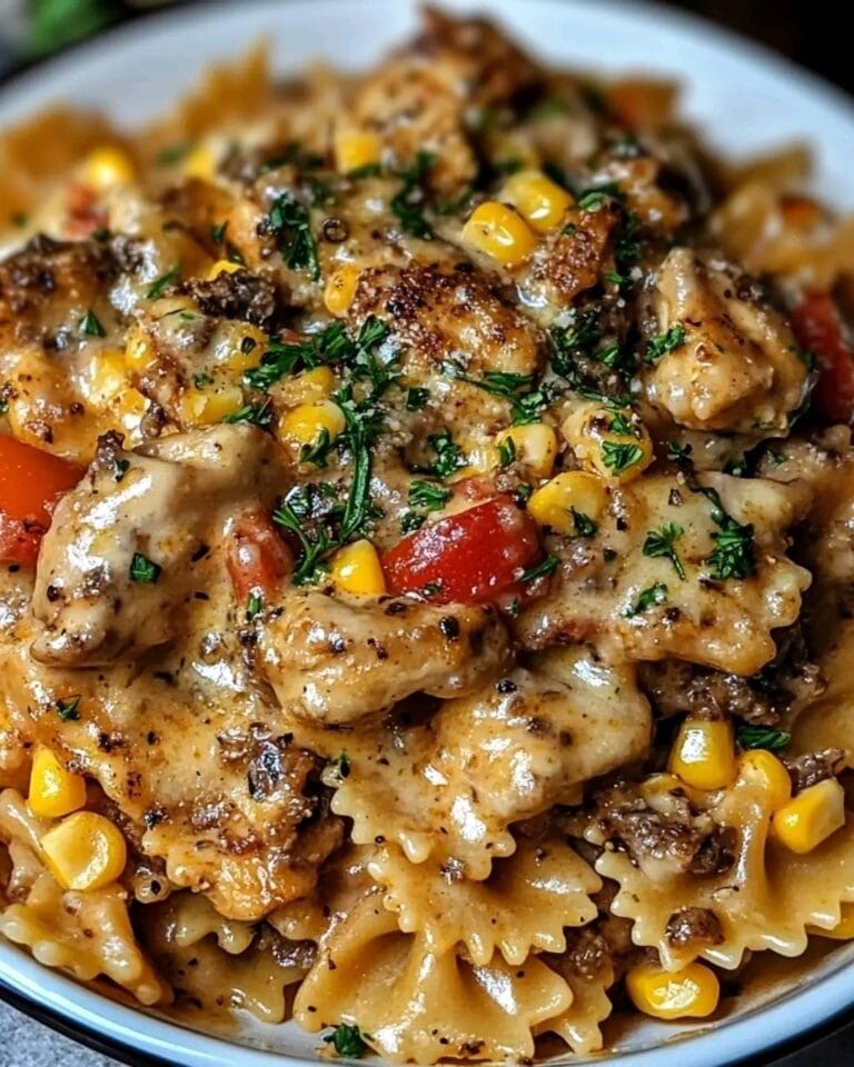 Skip to contentParmesan Chicken Bowties with Roasted Bell Peppers and Corn A Comforting Skillet Pasta with Creamy Parmesan Sauce Few meals strike the perfect balance between comfort and color quite like Parmesan Chicken …