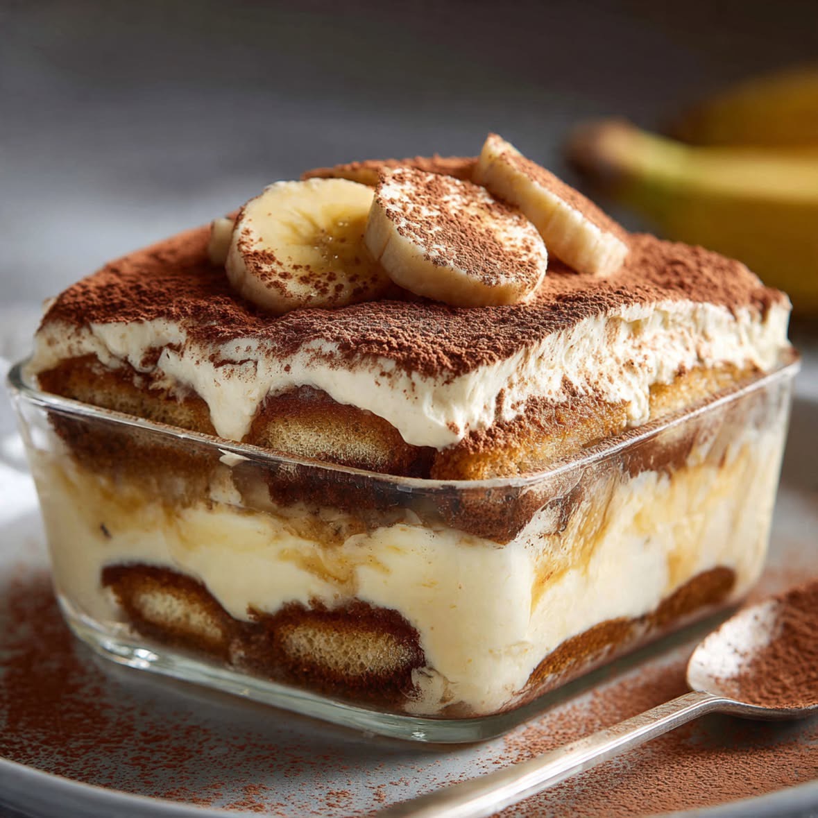 The beauty of this recipe lies in its layers. Soft ladyfinger biscuits soak up milk or coffee, slices of ripe bananas add a natural sweetness and creamy texture, and a fluffy mascarpone cream brings everything together. When chilled, the layers meld beautifully, creating a dessert that is both light and rich at the same time.