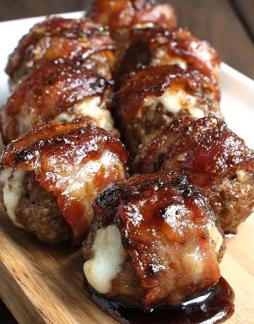 Cheddar-Stuffed BBQ Bacon Bombs are everything you love about bold, indulgent comfort food wrapped into one irresistible bite. Imagine juicy, perfectly seasoned ground beef shaped into generous meatballs, each one hiding a molten core of sharp cheddar cheese. Now imagine those meatballs carefully wrapped in smoky strips of bacon, baked or grilled until the bacon turns crisp and golden. Finally, they are brushed generously with rich, tangy barbecue sauce that caramelizes into a sticky glaze.