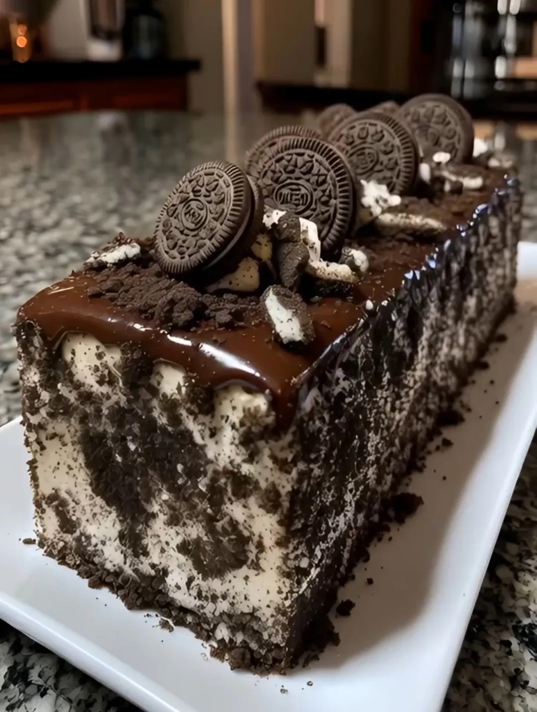 Crushed Oreo cookies are folded into both the cake batter and frosting. They add flavor, texture, and visual contrast. Crushing them by hand rather than pulverizing them completely ensures some pieces remain slightly chunky.
