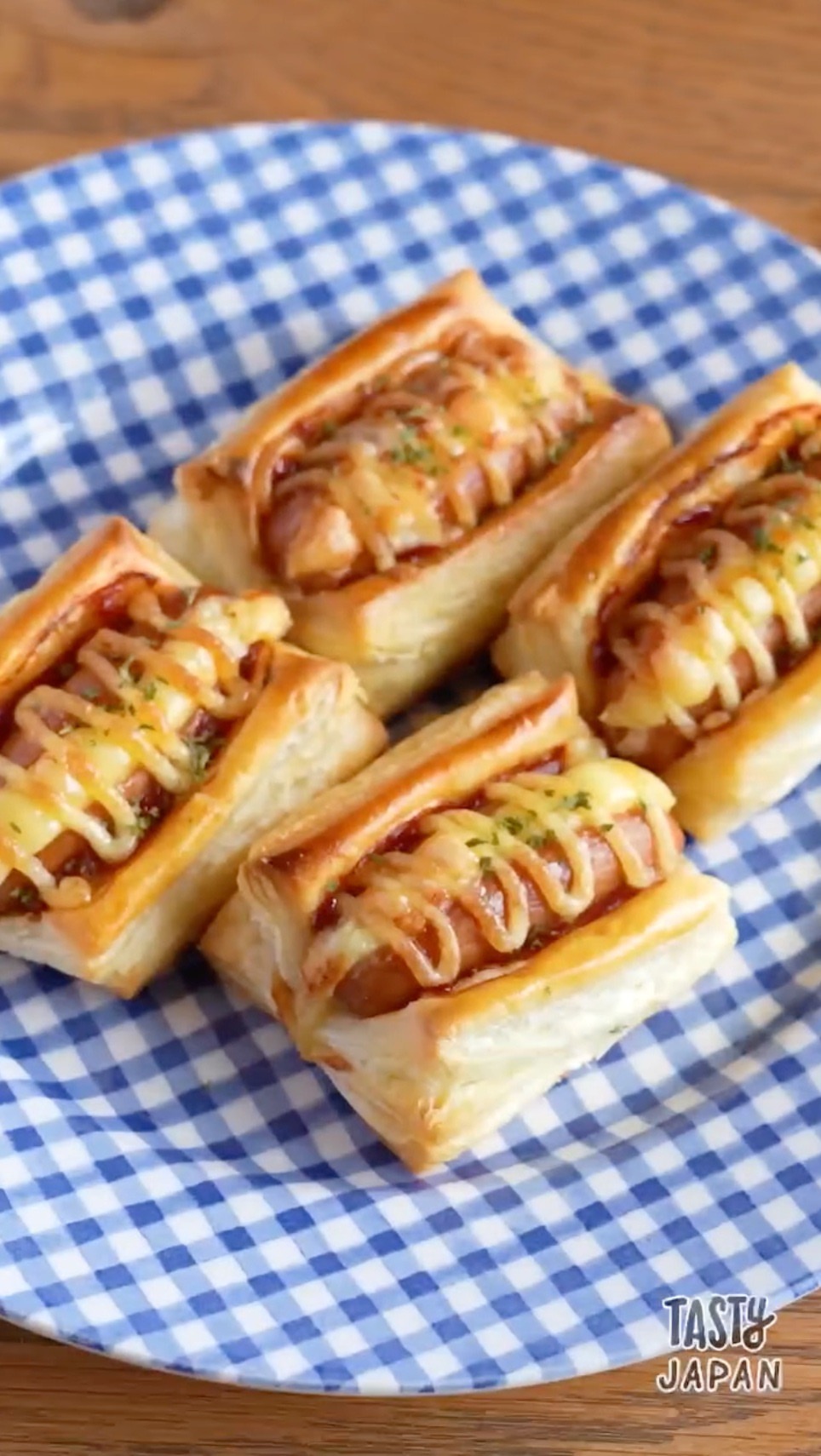 This recipe draws from the fusion style seen in Japanese home cooking and konbini-inspired videos, where Western ingredients like puff pastry and hot dogs meet Japanese flavors such as mayonnaise-ketchup combinations (a common topping for okonomiyaki, takoyaki, or fries). It’s simple yet impressive, using mostly store-bought items for quick preparation.