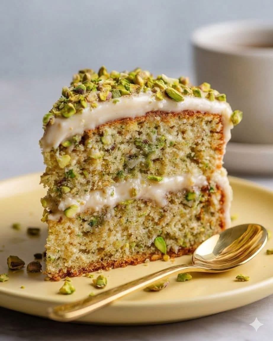 Another reason this cake is loved by many is its texture. Ground pistachios create a soft, tender crumb while also adding subtle richness. The cake feels light but still satisfying.