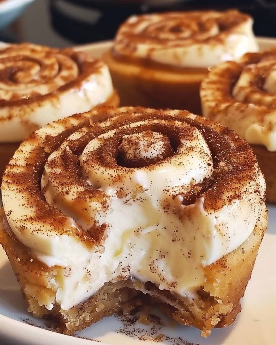 Mini cinnamon roll cheesecakes combine two beloved treats into one irresistible dessert: the warm, spiced comfort of classic cinnamon rolls and the creamy, tangy richness of cheesecake. These individual-sized portions feature a buttery biscuit base, a smooth cinnamon-infused cream cheese filling, a crunchy cinnamon-sugar topping for texture contrast, and a swirl of classic cream cheese icing on top that mimics the glaze of fresh-baked cinnamon rolls. Perfect for parties, holidays, brunch spreads, or whenever you want a bite-sized indulgence without committing to a full cheesecake, these minis deliver all the flavor in a convenient, portable form.