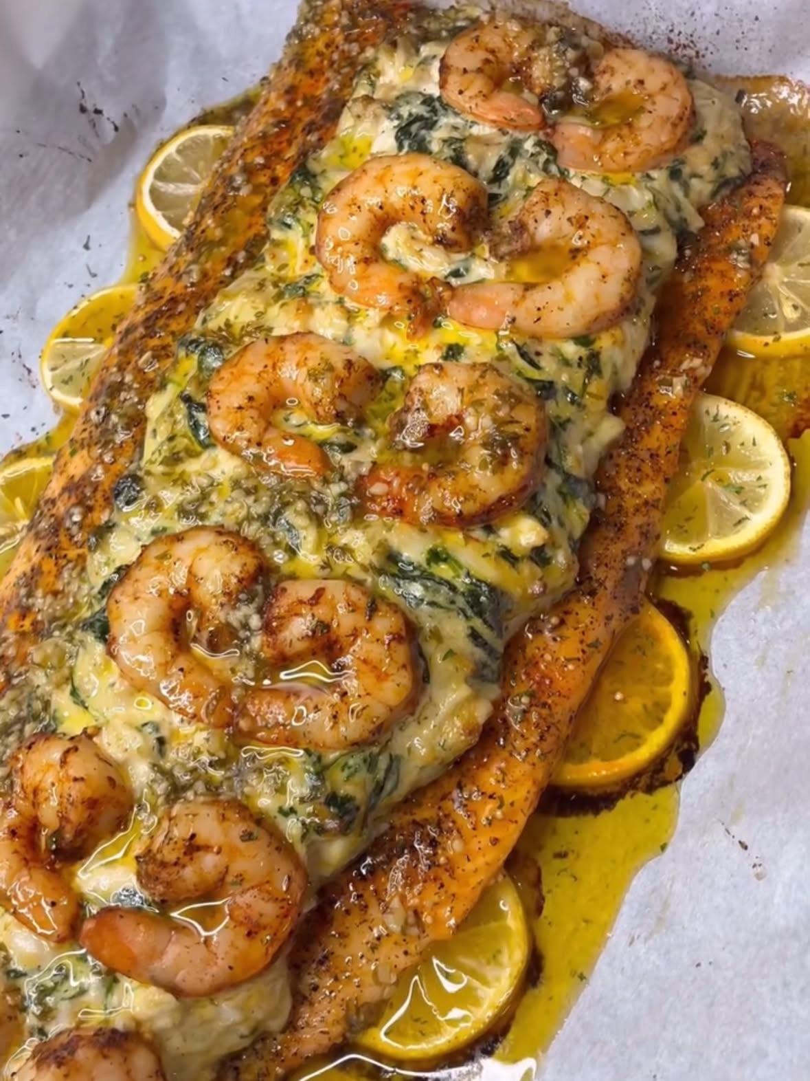 Stuffed Salmon with Shrimp and Spinach